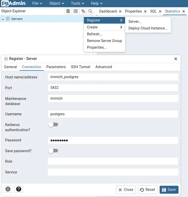 A short guide on connecting pgAdmin to Immich.